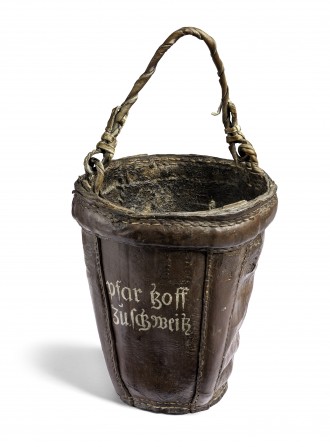 Das Löschwasser musste in solchen Ledereimern, so genannten Feuereimern, herbeigeschafft werden. Diese waren an verschiedenen Orten in einem Dorf verteilt, um sie in einem Notfall rasch zur Hand zu haben. Die Gebäudebesitzer waren verpflichtet, eine gewisse Anzahl Feuereimer bereit zu halten. Dieser Eimer (18. Jahrhundert) wurde im Pfarrhof Schwyz aufbewahrt.