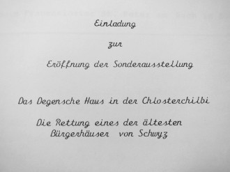 1984 war die Restaurierung des Degen’schen Hauses abgeschlossen – eines der ältesten Wohnhäuser in Schwyz, das über Jahrhunderte hinweg immer wieder erweitert oder ergänzt wurde. Die Ausstellung widmete sich der Geschichte dieses Hauses.