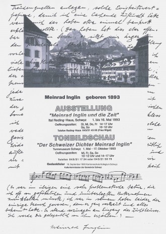 Eine Tonbildschau der Kulturkommission Schwyz über den Schwyzer Dichter Meinrad Inglin (1893-1971) stiess auf ein sehr grosses Echo. Mit ihr wurde das Inglin-Jahr 1993 eröffnet.