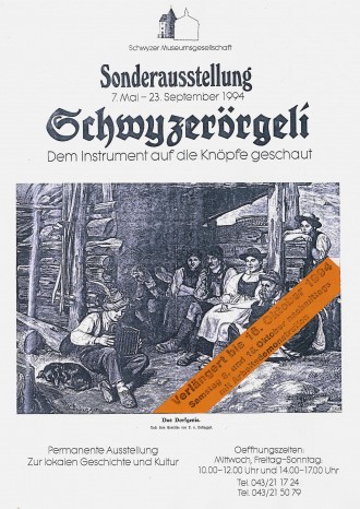 Das Musikhaus Eichhorn stellte für die Ausstellung verschiedene Schwyzerörgeli aus dem späten 19. und dem 20. Jahrhundert zur Verfügung Damit konnten die Entwicklung der Instrumente und deren Bedeutung in der Volksmusik gezeigt werden. Ein Örgelibauer demonstrierte an ausgewählten Tagen das Handwerk.