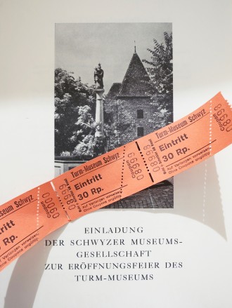 Sonderausstellungen und Veranstaltungen: Als Ergänzung zur Dauerausstellung im Turmmuseum zeigte die Schwyzer Museumsgesellschaft regelmässig Sonderausstellungen. Vom Gewerbe über das Schwyzerörgeli bis hin zum Totenbrauchtum wurden hier die unterschiedlichsten Aspekte der Schwyzer Kultur und Geschichte vertieft vorgestellt und erklärt. Weitere Ausstellungsprojekte wurden in Zusammenarbeit mit dem Forum Schweizer Geschichte und dem Bundesbriefmuseum realisiert. Auch seit der Schliessung des Turmmuseums 2003 organisiert die Schwyzer Museumsgesellschaft in regelmässigen Abständen Sonderausstellungen und Veranstaltungen zu verschiedenen historischen und kulturellen Themen.