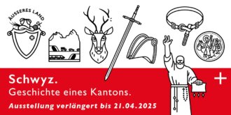 Die Ausstellung erzählte die Geschichte des Kantons Schwyz von den ersten Spuren menschlicher Anwesenheit bis zum wirtschaftlichen Aufschwung im 20. Jahrhundert. Das sind rund 12’000 Jahre Geschichte, die im Ausstellungsraum des Bundesbriefmuseums auf nicht einmal ganz 60 Quadratmetern dargestellt wurden. Von Anfang an bedeutete das, dass wir uns einschränken mussten, respektive auf das Wesentliche konzentrieren mussten.